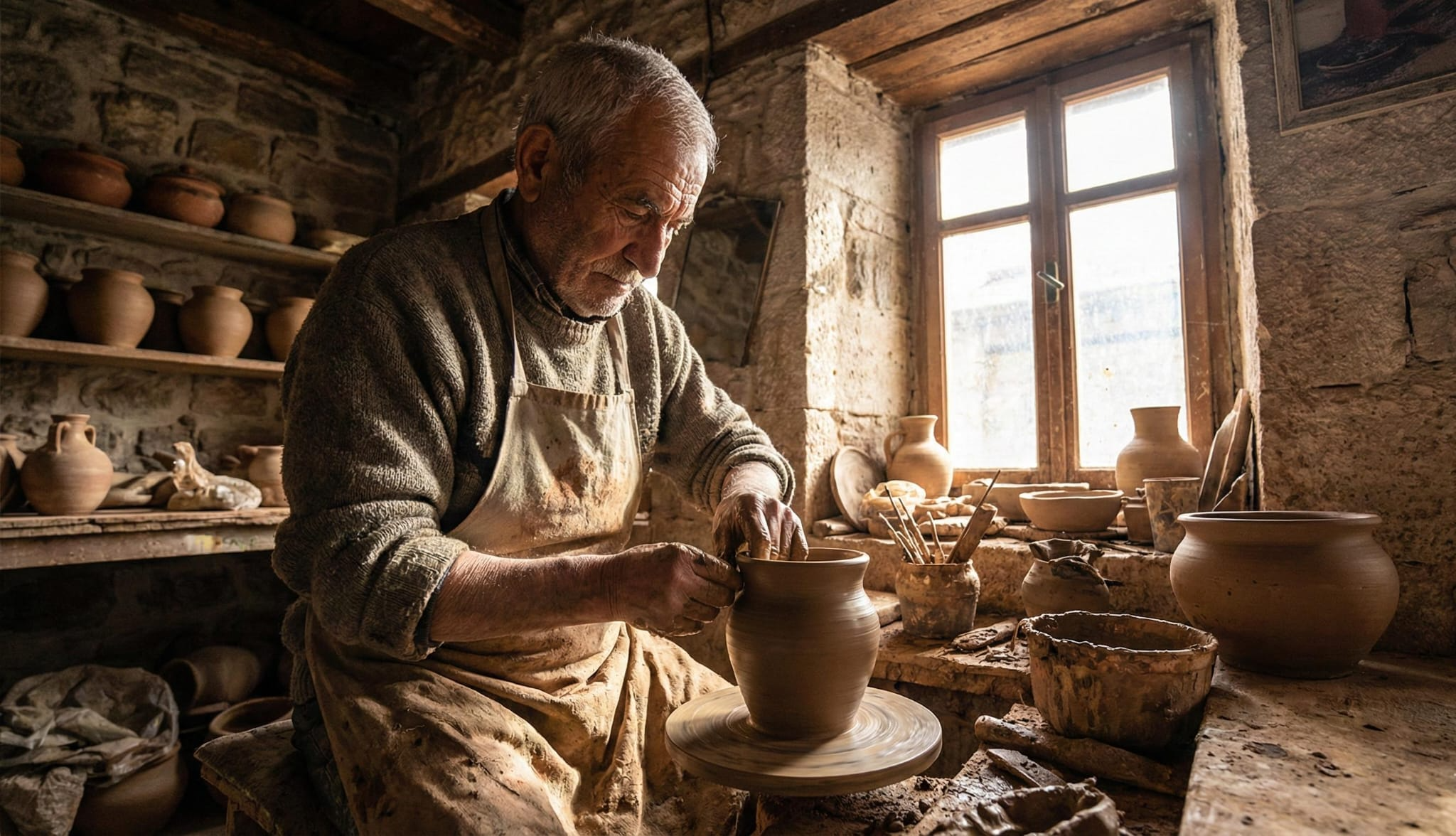 • Çarpıcı Bir Örnek: Bu dönüşümün en somut kanıtı, Kiriakon (Hızır İlyas) Kilisesi'dir. Kayaya oyulmuş bu dini yapı kompleksi, zamanla fonksiyon değiştirerek bir testi ve çömlek imalathanesine (kârhâne) dönüştürülmüştür,. Bu durum, volkanik yapının sunduğu yalıtım ve korumanın, hem dini inziva hem de endüstriyel üretim (seramik kurutma/fırınlama) için ne kadar elverişli olduğunu göstermektedir